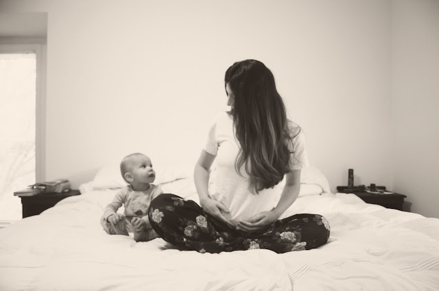 When I was pregnant with Evelyn, every feeling was new. I waited every week for those pregnancy newsletters to arrive in my inbox telling me that my child was now the length of a banana and weighed almost a pound. I read pregnancy and delivery books and was so intrigued with what my body was/would be going through. I lived for every kick and hiccup that I felt in the womb. This second time around, I have a decent idea of what I should be experiencing, no newsletters are coming to my inbox, and rather than sitting at my work desk all day with time to spare to daydream about this baby I would hold in my arms, I am now rocking my first baby thinking I'm rather scared at the possibility of loving another child this much. I feel like I've given all I have and more to Evelyn willingly. I love my days with just she and I. I feel like I can conquer anything in this world with my little sidekick beside me. It's amazing how someone so small can mold me into such a bigger person.